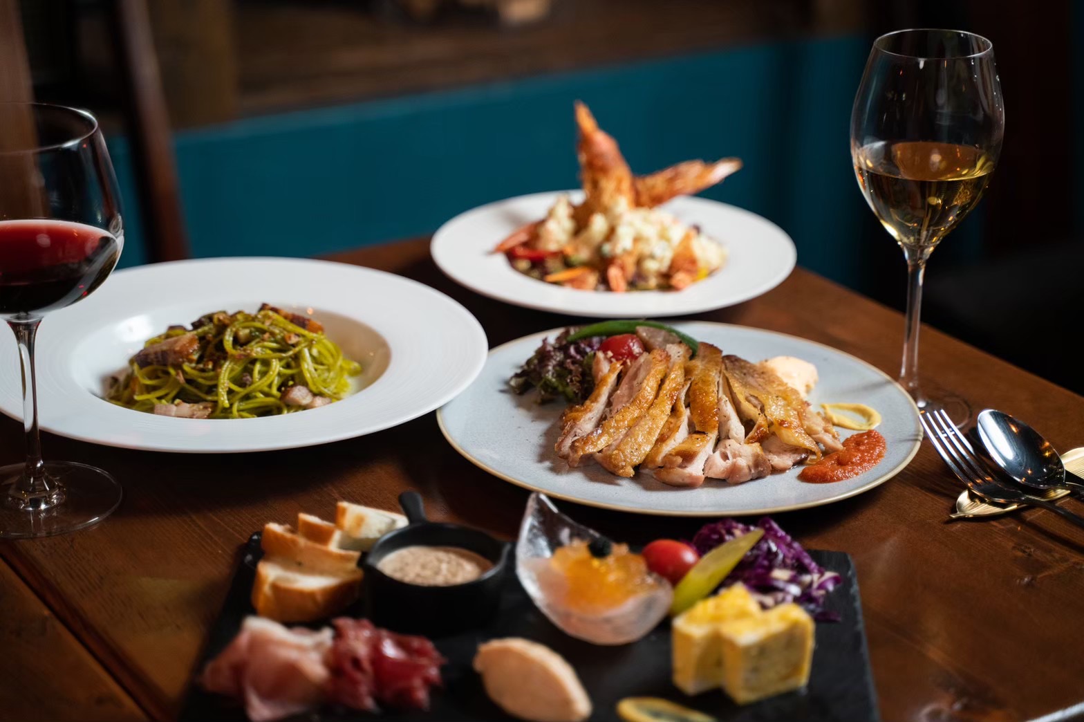 お食事は、シェフこだわりのコース料理、パスタやおつまみなど豊富にご用意。