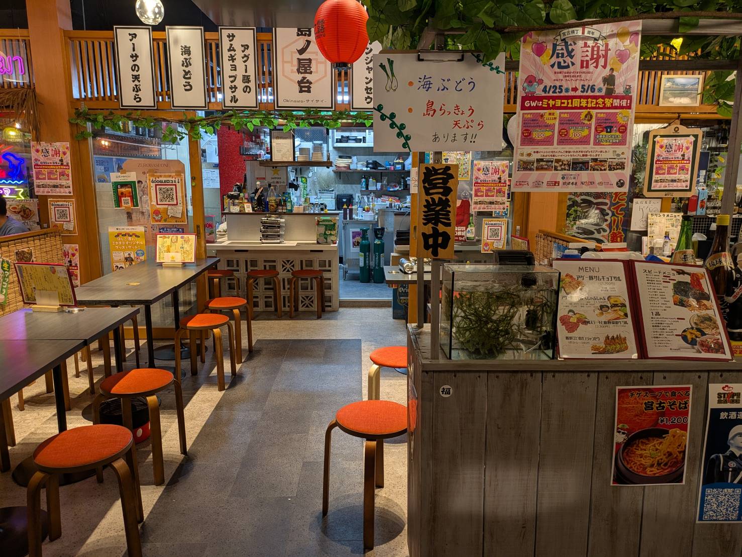 宮古島で初めての横丁スタイル集合施設「宮古横丁」は、地元の食材を活かした7つの居酒屋が並ぶ屋内型施設です。
